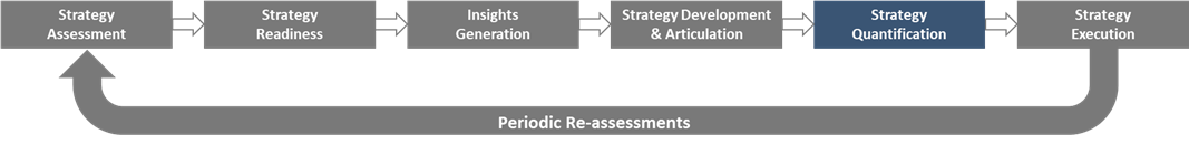 The timeline for strategy quantification varies, but we recommend anywhere from 6-8 weeks. Brainstorming and identifying the key initiatives to target in support of each imperative may only take 1-2 weeks, but significant time should be spent on quantification: researching and pressure-testing assumptions, conducting scenario analysis, and evaluating risks and dependencies to align on a projected outcome.